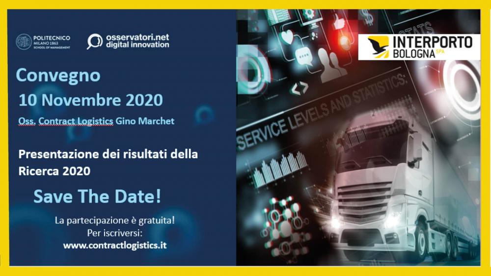 Il prossimo 10 novembre dalle ore 9:00 alle ore 13:30, si terrà il Convegno di presentazione dei risultati della Ricerca dell'Osservatorio Contract Logistics.