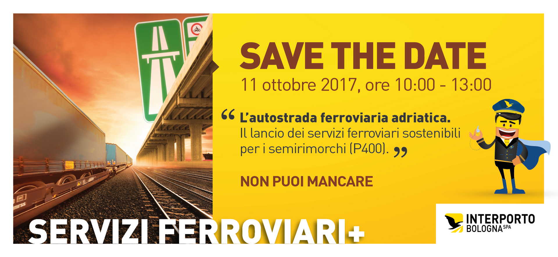 Mercoledì 11 ottobre dalle 10.00 alle 13.00 si terrà il workshop "L'autostrada ferroviaria adriatica" presso il nuovo centro servizi di Interporto Bologna.
