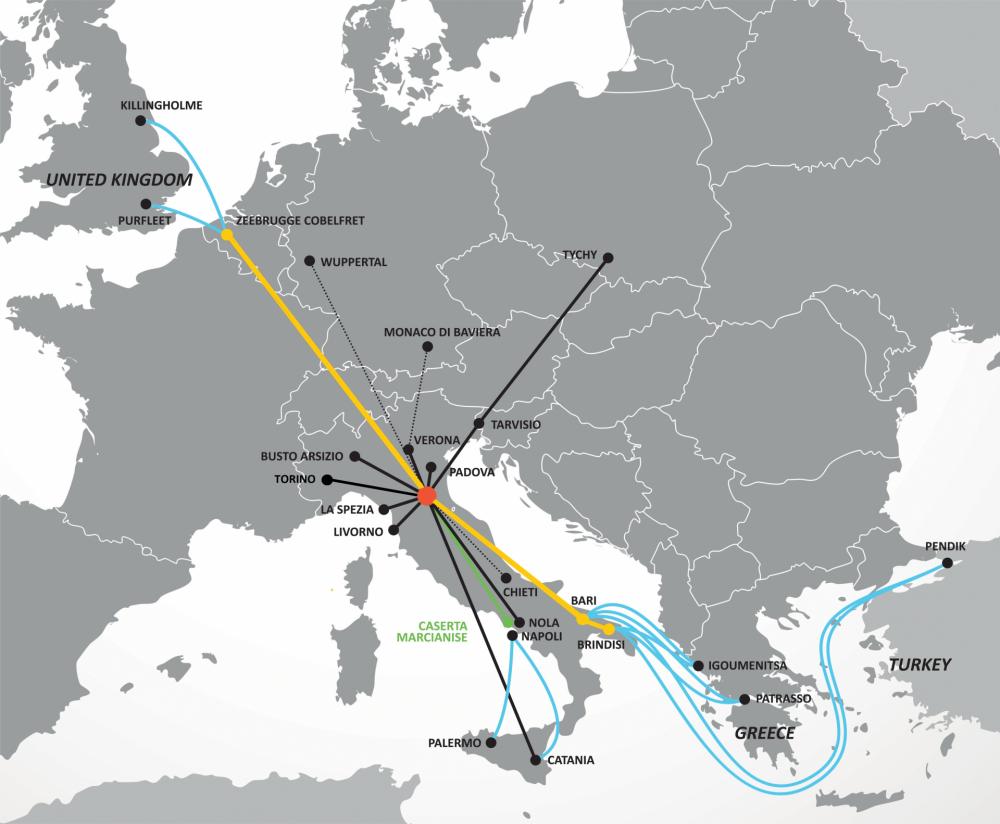 Il treno avrà la possibilità di imbarcare merce con origine destino sul territorio oltre che connettersi con i numerosi servizi navali che si attestano sul Porto.