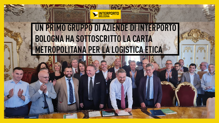 Si è tenuto martedì 30 maggio presso la sede della Città Metropolitana a Palazzo Malvezzi l'evento che ha visto un primo gruppo di aziende dell’Interporto di Bologna sottoscrivere la Carta metropolitana per la logistica etica, dimostrando l'intenzione delle aziende firmatarie di intraprendere un percorso di allineamento con i principi della Carta.